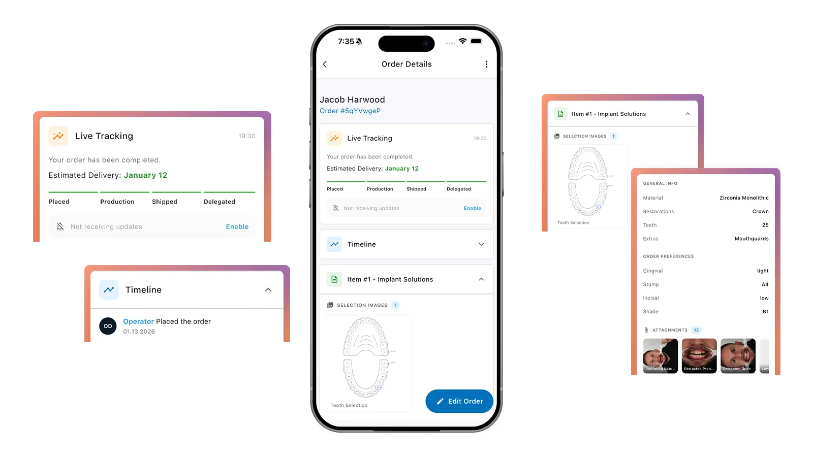Betrachten und verwalten Sie alle Ihre Fallfotos direkt in der Godent Mobile App. Bleiben Sie organisiert und greifen Sie jederzeit und überall auf qualitativ hochwertige Bilder zu, um den Fortschritt zu überprüfen und mühelos mit Ihrem Team oder Ihren Patienten zu teilen.