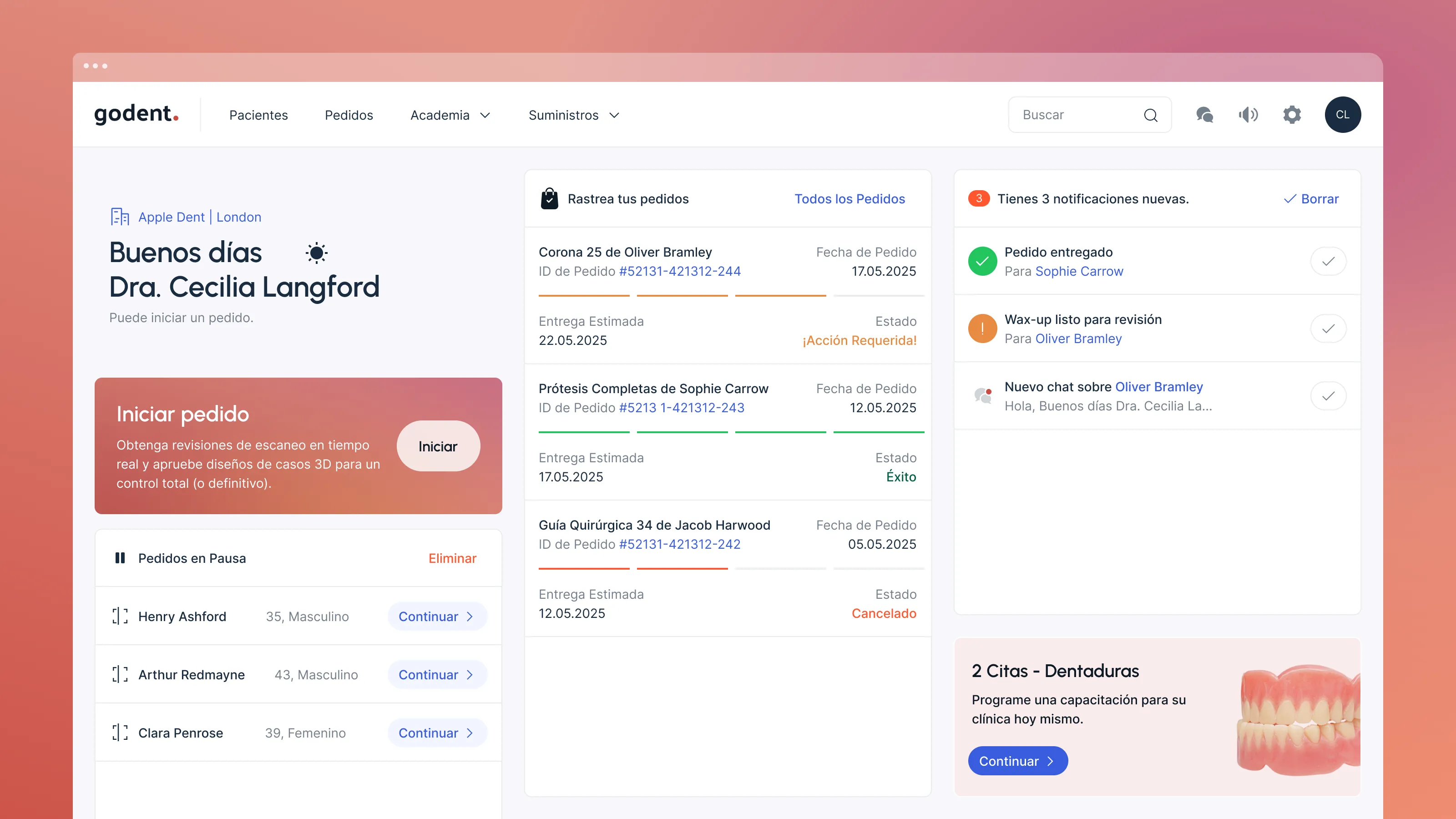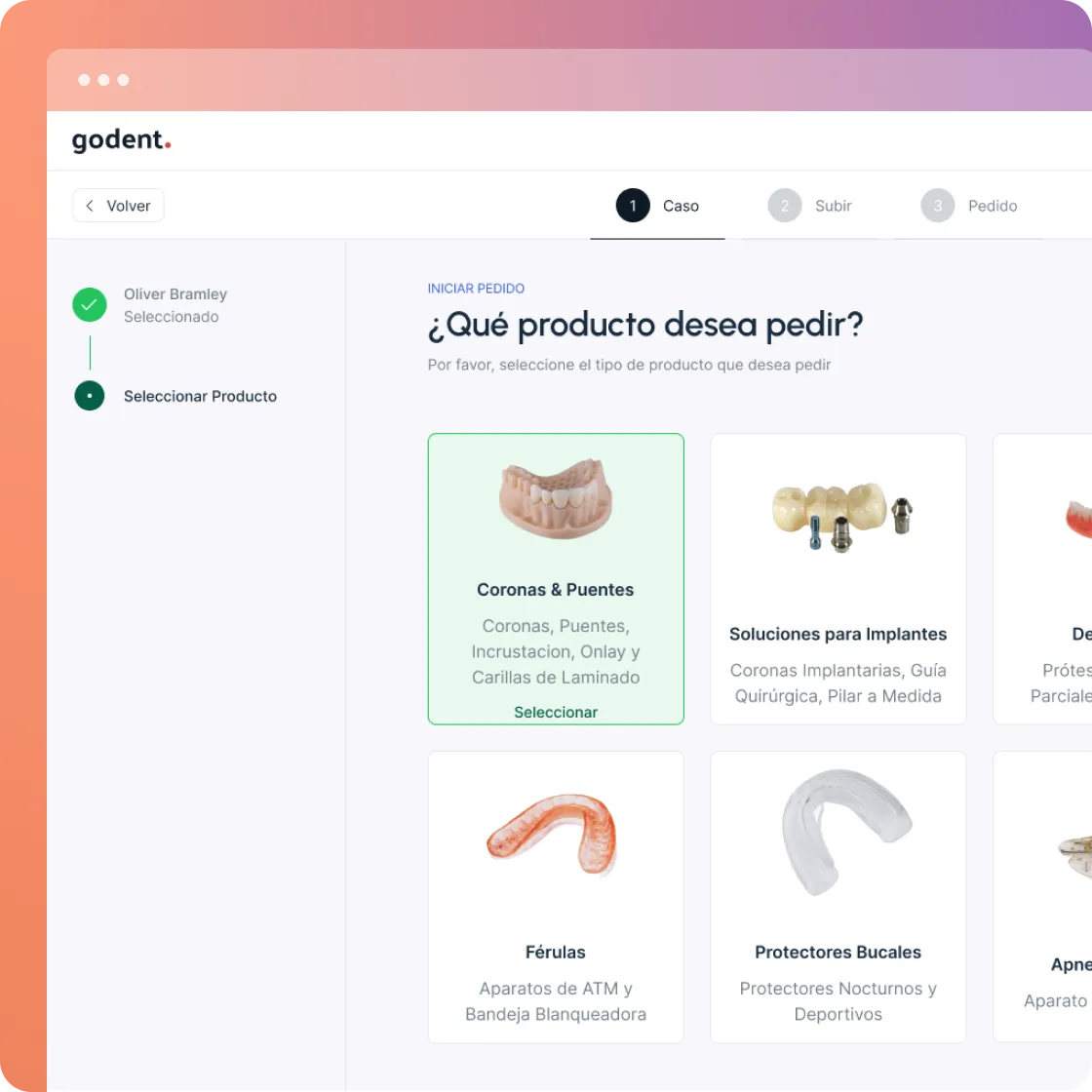 Transforme su flujo de trabajo odontológico con el envío de casos sin esfuerzo a través de la plataforma digital de Godent. Meticulosamente diseñada para eliminar las complejidades manuales, minimiza drásticamente los errores y le ahorra un tiempo valioso. Experimente un proceso fluido que garantiza una precisión superior de los datos desde el primer paso, lo que le permite centrarse más en la atención al paciente y menos en las cargas administrativas.